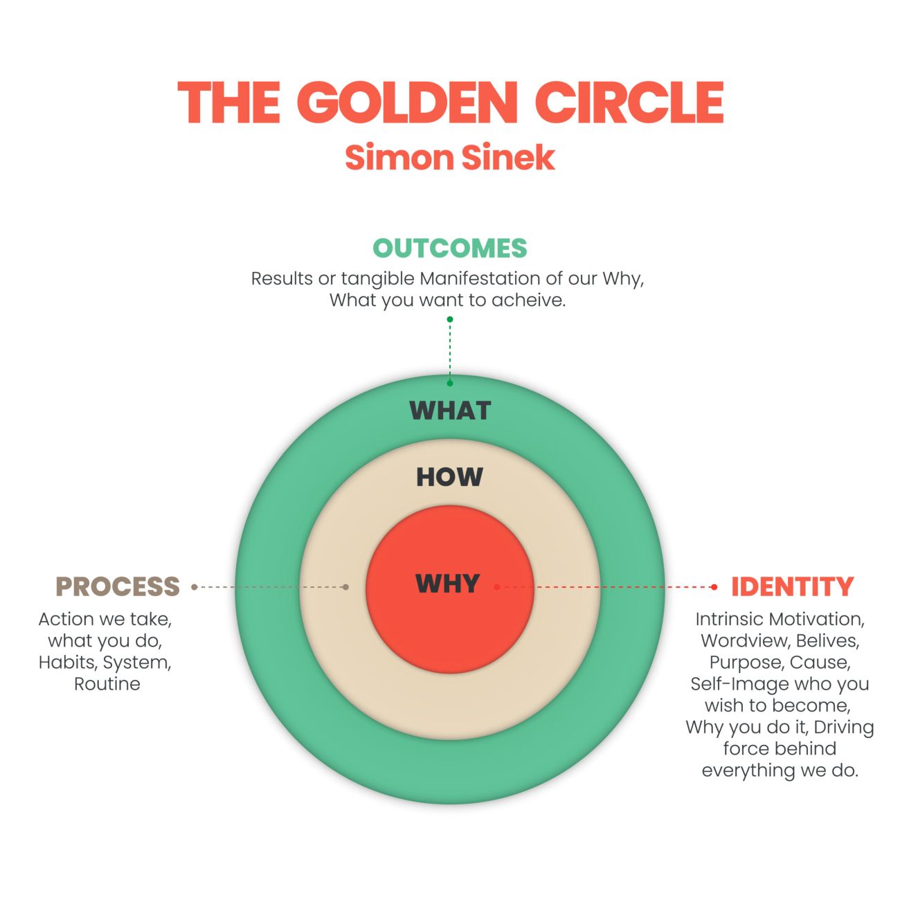 Der Goldene Kreis ist ein Konzept von Simon Sinek. Er stellt fest, dass viele Organisationen zwar wissen, WAS sie tun (WHAT?), viele auch wissen, WIE sie es machen (HOW?), aber nur wenige, WARUM oder WOZU sie tun, was sie tun.